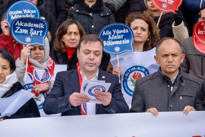Toplu sözleşme kararına uyulmadığını ve verilen sözlerin tutulmadığına dikkat çekerek konuşmasına başlayan Eğitim-Bir-Sen Bolu 2 Nolu Şube Başkanı Tahir DÜŞ yaptığı açıklamada şu ifadelere yer verdi;