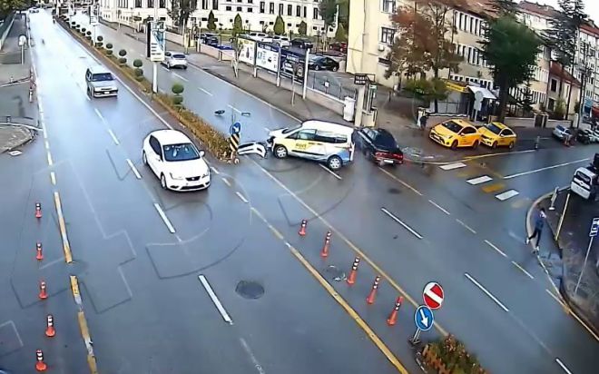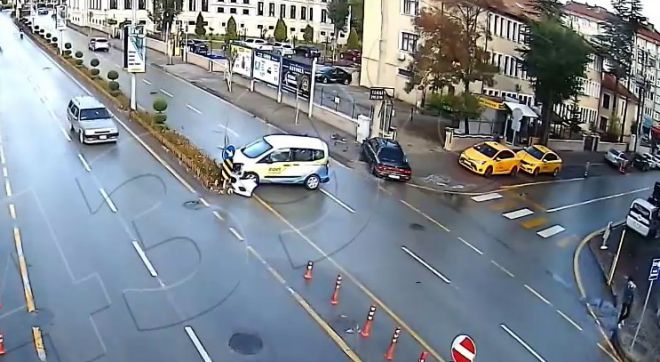 Bolu’da, Ocak ayı içerisinde kent merkezinde hafif ticari araç ile otomobilin karıştığı trafik kazası Kent Güvenlik Sistemi kameralarına yansıdı. Emniyet Genel Müdürlüğü Trafik Başkanlığı tarafından yayınlanan kaza görüntüsünde sürücülerin kurallara uymayarak kazalara sebebiyet verdikleri görüldü. Tabaklar mahallesi Ali Rıza Tekemen caddesinde meydana gelen trafik kazasında, hafif ticari araç acil dönüşten kontrolsüz şekilde Cumhuriyet Caddesi'ne bağlanmak istediği sırada, Kent Meydanı istikametine giden otomobille çarpıştı. Kent Güvenlik Sistemi kameralarına yansıyan görüntülerde, kaza anı ve otomobilin çarpışmanın etkisiyle savrulduktan sonra yön tabelasına çarpma anları yer aldı.