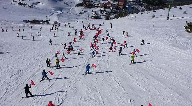 Türkiye’nin en önemli turizm merkezlerinden birisi olan Kartalkaya’da bulunan bir otelin öncülüğünde İdlib şehitlerini anmak için organizasyon düzenlendi. Organizasyon kapsamında kayak pistinde bir araya gelen Türk bayraklı yaklaşık 500 tatilci, ‘Şehitlerimizin ruhu şad olsun’ yazılı pankartın arkasında kayak yaptı. Tatilcilerin büyük destek verdiği şehitleri anma etkinliği, drone ile görüntülendi.