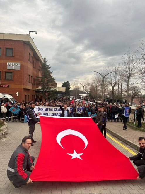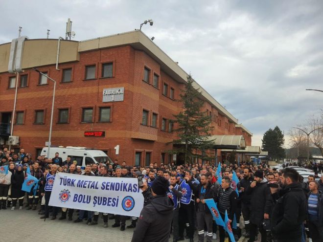 Türk-İş Bolu İl Temsilcisi ve Türk Metal Sendikası Bolu Şube Başkanı Hakan Gülen; Türk Metal Sendikası ve MESS arasında halen devam eden ve Bolu Arçelik İşçilerini de kapsayan Grup Toplu İş Sözleşmesi hakkında Arçelik Fabrikasında yaptığı açıklamada şunları söyledi ; “Sendikamız Türk Metal ile (MESS) arasındaki Grup Toplu İş Sözleşmesi görüşmelerinin tıkanması nedeniyle uyuşmazlık tutanağı tuttuk, Arabulucu sürecine geçtik. Ardından, MESS’e karşı eylem sürecimizi başlattık. Bugün burada haklı taleplerimize kulak tıkayan ve emeğimizi görmezden gelen İşveren Sendikası MESS’e, Türk Metal işçilerinin sesini duyurmak için toplandık. Buradan, MESS e sesleniyoruz… Sendikamız Türk Metalin verdiği taslak üyelerimizin alınteriyle yazılmıştır. Ve içinde sadece hakkını isteyen Türk Metal emekçisinin haklı talepleri vardır. Bizi görmezden gelmeye devam ederseniz eylemlerimizin şiddetini artırarak devam edeceğiz. Genel Başkanımız Sayın Pevrul Kavlak’ın çizdiği yolda gözümüzü kırpmadan mücadele etmeye ve sonuna kadar da gitmeye hazırız. Yaşasın Emek Mücadelemiz. Yaşasın Türk Metal.”