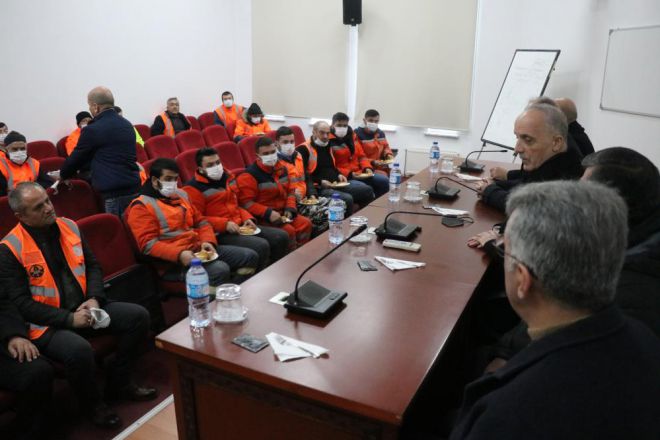 Türk-İş Genel Başkanı Ergün Atalay, kara yolları ve enerji işçilerinin sorunları olduğunu ve çözmeye çalıştıklarını ifade ederek, "Buradaki arkadaşlarımız 3 gündür evine gitmeyen, uyumayan arkadaşlarımız var. Burada en azından arkadaşlarımıza moral verelim, hal hatır soralım. Sıkıntıları var mı dinleyelim, çözebildiklerimizi çözelim, çözemezsek sırtlarını sıvazlayarak 'Bu ülkenin size ihtiyacı var' diyelim. Özellikle kış aylarında kara yolları işçilerimiz, enerji işçilerimiz yoğun gayret sarf ediyorlar. Bu seneki kar trafiğin ötesinde, insanlığın sağlığını ilgilendirecek şekilde yoğun oldu. 10 saat yolda kalanlar oldu. Ben özellikle Kızılay’ından AFAD’ına, gazetecisinden, işçisine kadar herkese teşekkür ediyorum. Herkes elinden gelen gayreti gösterdi. Ben de haftada 2 gün bu yolu kullanıyorum. Burada çalışan insanların sorunları var. Biz dün akşam çalışma bakanıyla beraberdik. Geçen hafta da sayın Cumhurbaşkanımız'a gittik. Kara yolları ve enerji işçilerinin sıkıntıları var. Burada bir bizim kadrolu işçilerimiz bir de müteahhittin çalıştırdığı işçiler var. İkisi de aynı işi yapıyor. Aynı çatı altında 2-3 tane işçi çeşidi olmaz. Dün Karayolları Genel Müdürümüzle görüştük. Onların meselelerini takip ediyor" şeklinde konuştu.