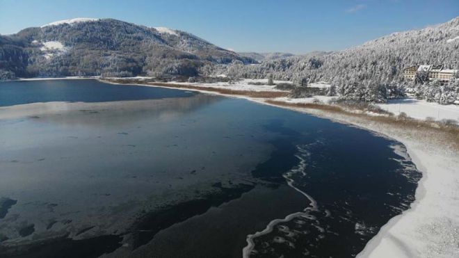 Öte yandan tatilciler, buz tutan gölün üzerine çıkmamaları konusunda yetkililer tarafından uyarılıyor.