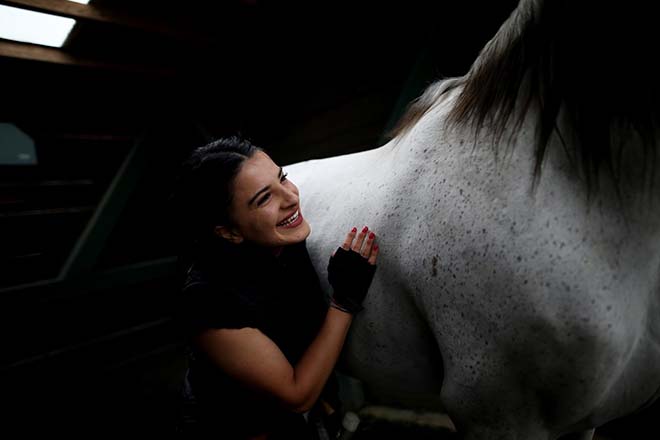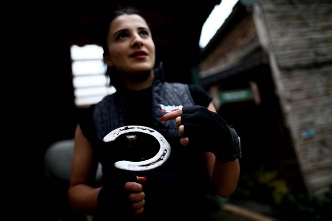 Bursa'da yaşayan 26 yaşındaki Şeyma Kalkan, felsefe bölümünü bitirmesine rağmen ilgi duyduğu atlara yakın olmak için ise Uludağ Üniversitesi Mennan Pasinli Meslek Yüksek Okulu’nda atçılık eğitimi aldı. At antrenörlüğü bölümünü okurken, sektörde nalbantların kısıtlı sayıda olduğunu farkına varınca nalbant olmaya karar verdi. Ojeli elleri, makyajlı yüzü, fönlü saçlarıyla mesleğe gönül veren Şeyma Kalkan, hocalarının da desteğiyle Türkiye'nin tek kadın nalbandı oldu. 3 yıldır bu işin içinde olduğunu ifade eden Kalkan, "Son 1 yıldır profesyonel olarak nal çakımı yapıyoruz. Şu an tabiat bünyesinde hara sorumlusu ve buranın nalbandıyım. Atlarımızla birlikte burada güzel vakit geçiriyoruz. Bu mesleğin kadınlar tarafından yapılması alışılagelmiş bir durum değil. Burada kendim çakım yaparken gelen misafirler izledikleri zaman şaşkınlıkla karşılıyorlar. Kadının elinde bir çekiç, bir çivi ve atın altında gördükleri zaman biraz hayret ediyor. Sonuçta güç isteyen bir meslek. Her kadın yapabilir mi? Kendinde bu gücü bulabilen kadın yapabilir. Bünye olarak fiziksel olarak kadına göre bir meslek olmadığı aşikar. Mesleğin dezavantajları bel kuvveti ile çalıştığımız için bel ve boyun fıtığı, kas ağrıları ile karşılaşabiliyoruz. Güçlü kuvvetli kadınlara öneririm. Şu an profesyonel olarak bu işten para kazanan nalbant kadın yok. Ama hobi olarak mutlaka vardır. Bunu iş olarak yapan tek benim" dedi.