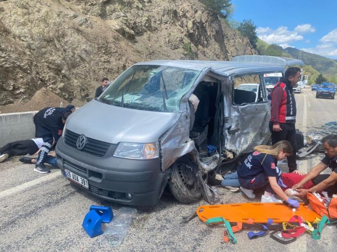 Kaza, Mudurnu-Akyazı kara yolunda Taşkesti Beldesi’ne bağlı Tosunlar köyü mevkiinde meydana geldi. Edinilen bilgiye göre, Eskişehir’den üniversite öğrencilerini taşıyan Mudurnu istikametinde seyreden Muhammed Onur T. idaresindeki 26 ADA 391 plakalı Volkswagen Transporter marka panelvan araç ile Akyazı istikametindeki Bilal Ö. yönetimindeki 14 NA 464 plakalı Fiat Ducato marka panelvan araç kafa kafaya çarpıştı. Kazada Volkswagen aracının içerisinde bulunan 12 kişi yaralanırken, Fiat’ın içinde bulunan 3 kişi ağır yaralandı. 15 kişinin yaralandığı kazanın ardından kazayı gören vatandaşlar durumu 112 Acil Çağrı Merkezi’ne bildirildi. Olay yerine çok sayıda sağlık ve jandarma ekipleri sevk edildi. Yaralılar şehirdeki ve ilçedeki hastanelere sevk edildi. Kazayla ilgili soruşturma başlatıldı.