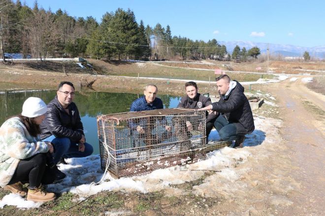 Bolu’da sazan balığı üretimi yapılan Gölköy Su Ürünleri Üretim İstasyonunda bir süredir anaç sazan balıklarının yer aldığı havuzda eksilmeler olduğunu gören yetkililer, tesisin çevresine tuzak yerleştirdi. Yapılan tuzaklama çalışmasında avlanması yasak olan su samuru yakalandı. Yakalanan su samuru, Su Ürünleri Mühendisi Çağatay Oktay ve görevliler eşliğinde yapılan incelemeler neticesinde doğal yaşam alanına uygun bir ortam tespit edilerek Aladağlar mevkiinde yaşamını sürdürebileceği, gıda sıkıntısı çekmeyeceği uygun doğal yaşam ortamına bırakıldı. Aile olarak yaşadığı bilinen su samurunun diğer üyelerini de yakalamak için kapan çalışmalarının devam ettiği belirtildi.