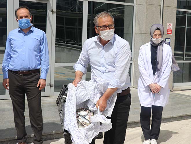 Bolu’nun Mudurnu ilçesine bağlı Gölcük köyünde alabalık çiftliği bulunan Yusuf Sarıhan, korona virüs salgınında ön saflarda mücadele eden sağlık çalışanlarına destek olmak için balık hediye etmek istedi. İl Sağlık Müdürlüğü ile irtibata geçen Sarıhan’a balıkları İzzet Baysal Devlet Hastanesi Köroğlu Ünitesi’ne götürebileceği söylendi. Sarıhan da kendi tesisinde bulunan havuzlardan 200 adet alabalığı temizleyerek hastanenin başhekimine teslim etti.