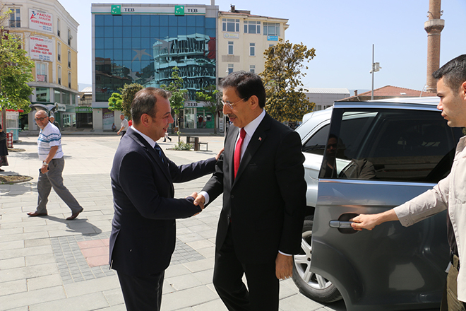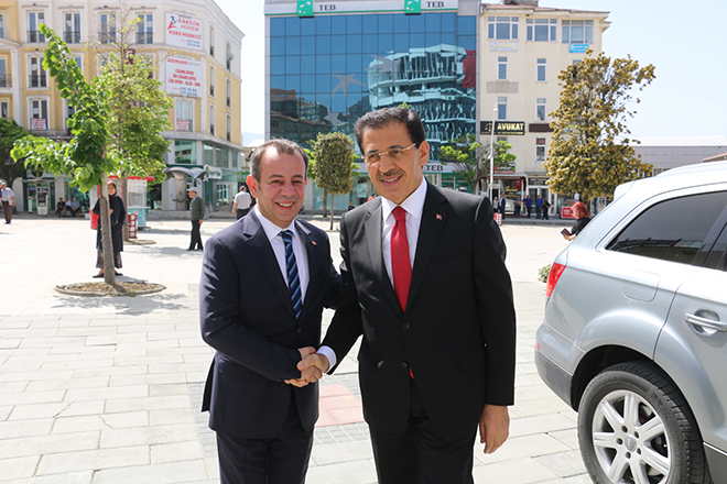 Bolu Valisi Ahmet Ümit, 31 Mart yerel seçimlerinden başarıyla çıkan Bolu Belediye Başkanı Tanju Özcan’a hayırlı olsun ziyaretinde bulundu. Çarşamba günü öğleden önce gerçekleşen ziyarette Bolu Valisi Ahmet Ümit, Bolu Belediyesi önünde, Belediye Başkanı Tanju Özcan tarafından karşılandı. Bolu Zabıtası’ndan oluşan karşılama mangasını selamlayan Vali Ahmet Ümit, daha sonra belediye binasındaki başkanlık katına çıkarak önce belediye ziyaretçi defterini imzaladı, ardından Belediye Başkanı Tanju Özcan ile görüştü. Sohbet havasındaki görüşmede Bolu Valisi Ümit, Belediye Başkanı Tanju Özcan’ı seçim başarısından dolayı kutlayarak, başarı dileklerini iletti. Vali Ümit, yaklaşık 1 saat süren görüşmenin ardından Bolu Belediyesi’nden ayrıldı.