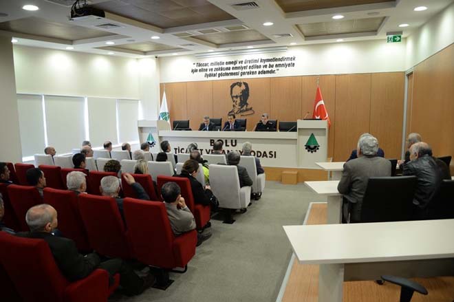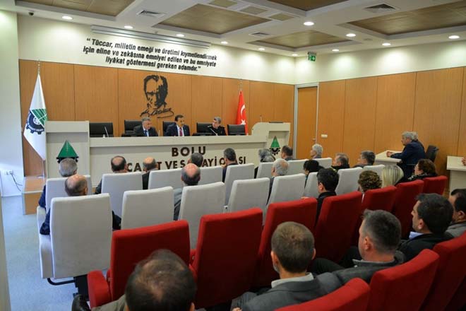 Bolu Ticaret ve Sanayi Odasında, muhtarlara yönelik güvenlik toplantısı düzenlendi. Toplantıya Bolu Valisi Ahmet Ümit, İl Emniyet Müdürü Armağan Adnan Erdoğan, İl Jandarma Komutanı Albay Nadir Çelik, bazı daire müdürleri ve ilimiz merkezindeki mahalle muhtarları katıldı. Toplantının başında muhtarları tebrik eden Vali Ümit, “Girdiğiniz seçimi kazandınız. Bu bir bayrak yarışı. Artık sizlerin çok önemli sorumlulukları var. Bu saatten sonra sizlerle bir ekip olarak insanlarımıza hizmet edeceğiz” dedi. Toplantıda muhtarların dikkat etmeleri gerektiği konuları da sıralayan Bolu Valisi Ahmet Ümit, muhtarların ulaşılabilir olmasından, alacakları hizmet içi eğitimlere kadar bir çok konuda açıklamalarda bulundu.