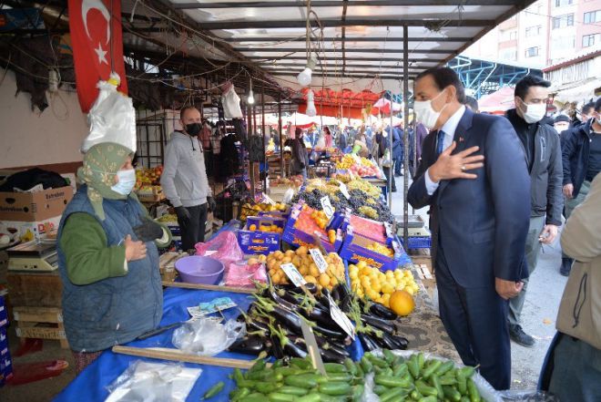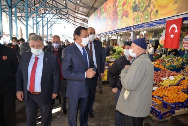 Pazaryeri denetlemesinde esnafımızla ve vatandaşlarımızla bir araya gelen Vali Ümit, Koronavirüs tedbirleri hakkında hatırlatmalarda bulundu.