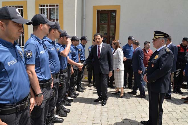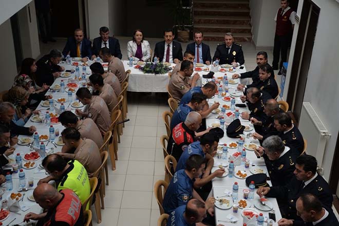 Bolu Valisi Ahmet Ümit ve beraberindekiler daha sonra İl Emniyet Müdürlüğü Asayiş Şube Müdürlüğü’ne giderek burada emniyet mensuplarının ve Şehitlerimizin yakınlarının bayramını kutladı. Burada Vali Ümit ve beraberindeki heyet İl Emniyet Müdürü Armağan Adnan Erdoğan tarafından karşılandı. Gerçekleştirilen ziyarette Vali Ümit ve beraberindekiler emniyet mensupları ile tek tek bayramlaştılar. Jandarma ve Emniyet ziyaretinin ardından açıklamalarda bulunan Bolu Valisi Ahmet Ümit, “Bugün, milletimizin kültüründe, inancında çok ayrı bir yere sahip olan önemli günlerden birisini hep birlikte idrak ediyoruz. Bugün Ramazan Bayramının birinci günü. Ramazan Ayı’nı birlikte yaşadık ve onun sonucunda Cenab-ı Hak’kın bize bir lütfu olan bayramı beraber idrak ediyoruz. Emniyetimiz, Jandarmamız, bizler milletimizin huzur ve güvenliği için mücadele eden, kendi hayatından deyim yerindeyse vazgeçmiş öncelikle devletinin ve milletinin huzur ve güvenliği için kendisini ortaya koymuş insanlarsınız ve elhamdülillah o insanlardanız. Onun için belki herkes memleketinde anasının babasının ocağında, kucağında bayramlaşmalarını yapıyorlar ama emniyet ve jandarmamız burada. Çünkü sizlerin, bizlerin hepimizin görevleri takdir edersiniz ki daha farklı. Devletimiz bize aziz milletimizin can ve mal güvenliğini, ırzını, namusunu her şeyini, devletini, milletini, vatanını, sınırlarını korumak üzere kutsal bir görev vermiş. Bu görev münasebetiyle hep birlikte gönül gönüle buradayız. Emniyet güçlerimiz bizler için çok önemli. Bu mübarek ve güzel günde Jandarmamız ve Emniyet mensuplarımızla birlikte olmaktan mutluyuz, gururluyuz. Bu vesile ile tüm güvenlik güçlerimizin mübarek Ramazan Bayramlarını yeniden kutluyorum. Cenab-ı Hak nice nice bayramlara hep beraber ailelerimizle, sevdiklerimizle beraber bizleri diğer bayramlara da sağlık ve mutluluk içinde ulaştırsın. Allah devletimize, milletimize zeval vermesin” dedi.