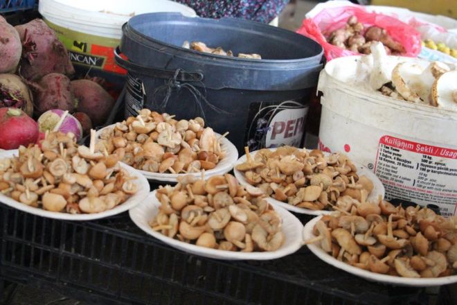 Bolu'da geçtiğimiz hafta etkili olan yağışların ardından ormanlarda çıkan mantarlar vatandaşların yüzünü güldürdü. Ormanlık alanlara giden vatandaşlar, kova kova mantar toplayarak İhsaniye Mahallesi'nde kurulan halk pazarında satışa sundu. Pazarda kilosu 400 liradan satılan kanlıca mantarı yoğun ilgi gördü. Diğer mantar türleri ise söbelen 250, ağaç mantarı 200, karemel kadunu 250, kokulu mantar 150, mıntırık 300, kayışkıran ise 150 liradan satıldı.