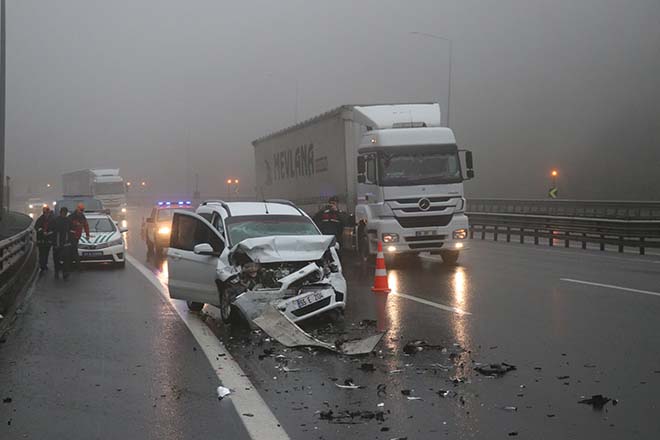 Kaza, TEM Otoyolu Bolu Dağı mevkiinde meydana geldi. Edinilen bilgiye göre, Ankara istikametine seyir halinde olan Erol Sağlam idaresindeki 55 E 2134 plakalı hafif ticari araç, aynı yönde ilerleyen Mustafa Yücel yönetimindeki 01 BMC 33 plakalı kamyona arkadan çarptı. Kazada hurdaya dönen otomobilde bulunan sürücüyle birlikte 1’i çocuk 6 kişi yaralandı.