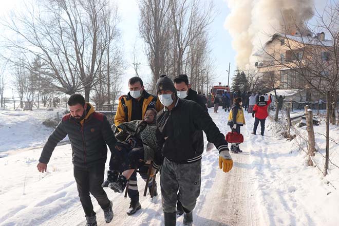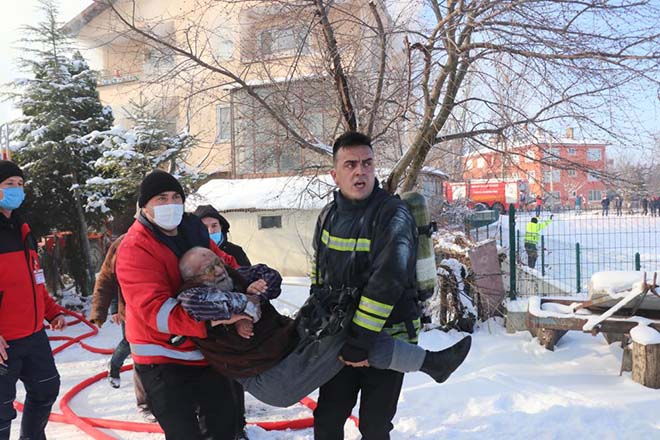 Yanan evin 3’üncü katında yaşayan Akif Yılmaz (87) ve eşi Zehra Yılmaz (82) evin içini saran dumanların arasında mahsur kaldı. İtfaiye ekipleri yaşlı çiftin evinin kapısını kırarak içeri girdi. Akif Yılmaz ve eşini dumanların arasından kurtaran ekipler ikisini de kucaklarında dışarı çıkardı. Yaşlı çift itfaiye aracının karda kayarak yolu kapatması nedeniyle sokağa giremeyen ambulansa sandalyeye oturtularak taşındı. Çiftin sağlık durumlarının iyi olduğu öğrenildi.