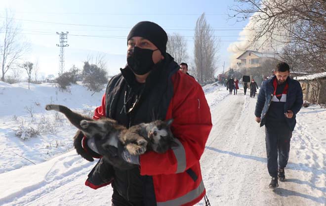 Apartmanın giriş katında yaşayan Sabriye Acar’ın ‘Duman’ isimli kedisinin içeride olduğunu söylemesi üzerine itfaiye ekipleri yeniden binaya girdi. İtfaiye müdürü Mehmet Duman, baygın halde bulduğu kediyi kucağına aldıktan sonra koşarak ambulansa yetiştirdi. Sağlık ekipleri ambulansa aldıkları kediyi hayata döndürmek için oksijen tüpüne bağlayarak dakikalarca kalp masajı yaptı. Duman isimli kedi daha sonra, Bolu Belediyesi Hayvan Ambulansı’na alınarak Hayvan Hastanesi’ne götürüldü. Duman isimli kediye kalp masajı yapıldığı sırada apartmanda yaşayanlar 'İnşallah ölmez' diyerek dua ederek gözyaşı döktüler. Yangınla ilgili inceleme başlatıldı.