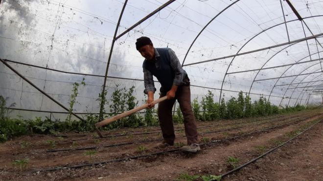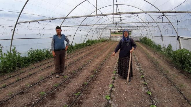 Bolu'da 28 yıl boyunca devlete hizmet eden 70 yaşındaki İbrahim Kuruhan, 2000 yılında emekli olduktan sonra kendi işini yapmaya karar verdi. Mudurnu ilçesine bağlı Fındıcak köyünde yaşayan İbrahim ve Vasfiye Kuruhan çifti, Sarıcalar Mahallesi'nde kendi imkanlarıyla kurdukları iki serada hayatlarını sürdürüyor. Emeklilik yıllarında birbirlerine destek olan çift, 50 yıldan uzun bir süredir evli. Sabahın erken saatlerinde uyanan çift, kahvaltıdan önce seralarını geziyor ve seraların bakımlarını yapıyor. İbrahim ve Vasfiye Kuruhan, seralarını kış sonunda hazırlıyor ve domates, salata, biber, fasulye, patates, çilek gibi sebzeleri yetiştirerek, yaz sezonunda satışa başlıyor.