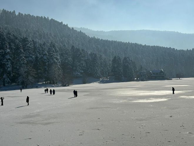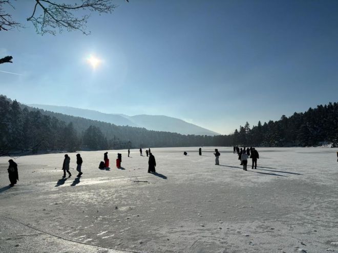 Türkiye'nin en önemli turizm merkezlerinden birisi olan Gölcük Tabiat Parkı kar yağışıyla birlikte beyaz örtüyle kaplandı. Çam ağaçlarıyla kaplı Gölcük Tabiat Parkı'na yılın 4 mevsimi ülkenin çeşitli illerinden gelen tatilciler, karın tadını göl çevresinde yürüyüş yaparak çıkarıyor. Kartpostallık görüntülerin oluştuğu Gölcük Tabiat Parkı’nda, gece saatlerinde sıfırın altında 12 dereceye kadar düşen hava sıcaklığı nedeniyle tabiat parkı içerisinde bulunan göl tamamen buzla kaplandı. Havanın güneşli olmasından dolayı gölün bazı kısımlarında buz tabakasının inceldiği görüldü. Gölcük’e gelen ziyaretçilerin birçoğu tehlikeli ve yasak olmasına rağmen donan gölün üzerinde yürüyüp, fotoğraf çektirdi. Bölgede asılı olan uyarı tabelalarına aldırış etmeden vatandaşlar göl üzerinde metrelerce yürüdü. Çevredeki görevliler ise buz tutan gölün üzerinde yürüyenleri düdükle uyararak alandan uzaklaştırdı.