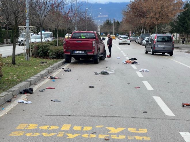 Kaza, Umutkent Mahallesi mevkiinde meydana geldi. Edinilen bilgiye göre, İzzet Baysal Devlet Hastanesi Bulvarı üzerinden, merkez istikametine seyreden M.A.E. yönetimindeki 14 EV 311 plakalı pikap, Yaya geçidinden, karşıya geçmeye çalışan Esma K. idaresindeki elektrikli motosiklete çarptı. Çarpanın etkisiyle motosiklet sürücüsü Esma K. yola savruldu. Bölgeden geçen diğer sürücüler tarafından durum 112 Acil Çağrı Merkezi'ne bildirildi. İhbar üzerine bölgeye sağlı ve polis ekipleri sevk edildi. Olay yerinde ilk müdahalesi yapılan Esma K. ambulans ile Bolu İzzet Baysal Devlet Hastanesi Köroğlu Ünitesi Acil Servisine kaldırıldı. pikap sürücüsü M.A.E. ise kazadan yara almadan kurtuldu. Kazayla ilgili inceleme başlatıldı.