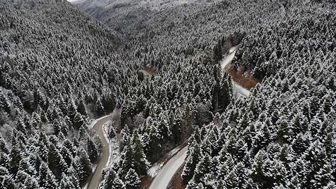 Bolu’da, hava sıcaklıklarının düşmesiyle birlikte yüksek kesimlerde kar yağışı başladı. Kar yağışının etkili olduğu Yedigöller Milli Parkı yolu tatilcilerin herhangi bir olumsuzluk yaşamamaları için araç geçişine kapatıldı. Bolu Doğa Koruma ve Milli Parklar Şube Müdürlüğü ve jandarma ekipleri tarafından milli park yolunun Sarıçam köyü sapağına beton bariyerler yerleştirerek tatilcilerin ilerlemesini engelledi. Sürücüler, Yedigöller Milli Parkı’nın kar yağışı ve buzlanma nedeniyle trafiğe kapatıldığına yönelik yol üzerine konulan tabelalarla da uyarıldı. Kar yağışıyla birlikte beyaz örtüyle kaplanan Yedigöller yolu üzerindeki çam ağaçları havadan görüntülendi.