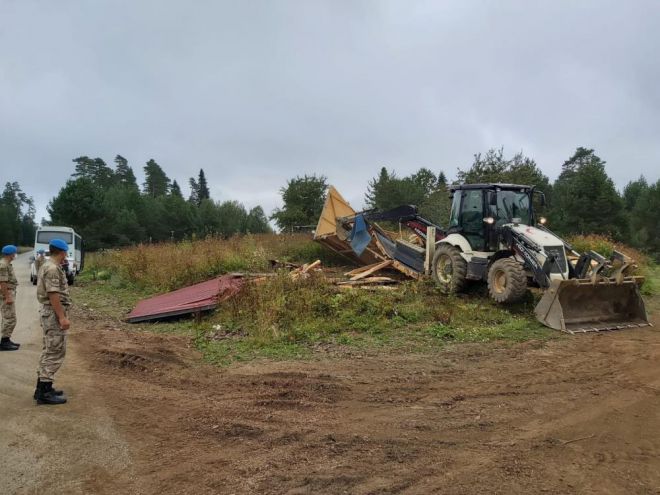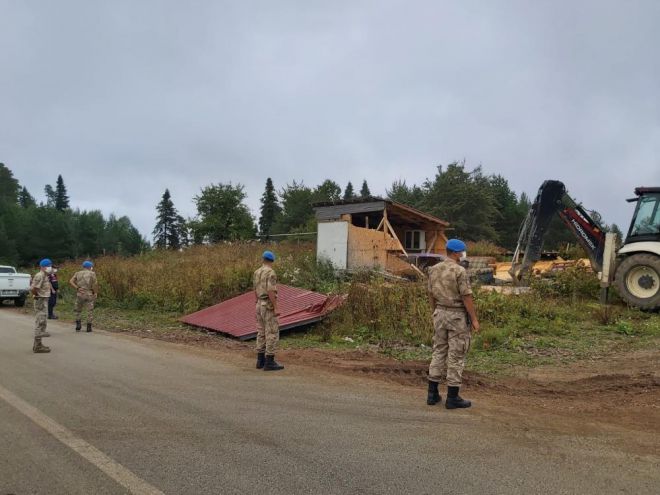 Bolu’da, Orman İşletme Müdürlüğü sınırları içerisinde bulunan Yedigöller Milli Parkı yolu üzerinde bulunan ve daha önce yasal işlem uygulanan kaçak yapılarla ilgili dava açıldı. Kaçak yapılarla ilgili yargılama sonunda mahkeme tarafından müsadere kararı verildi. Verilen yargı kararları neticesinde kaçak yapılar müsadere edilerek daha önce de belirlenen tarihte iş makineleriyle yıkım işlemleri gerçekleştirildi. Yetkililer tarafından bundan sonra da ormanlık alanlarda kaçak yapılaşmaya müsaade edilmeyeceği bildirildi.