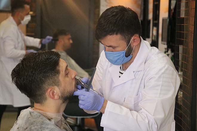 Berber Hüseyin Tayşi, “Bugün bismillah dedik. İnşallah daha hayırlısı olacak. Bu salgın gittikten sonra daha güzel günler bizi bekliyor. Biz 6 kişiyiz. Nöbetleşe sisteme geçtik. Her gün 3 kişi çalışacak. Hem müşterinin hem de kendi sağlığımız için koltuk mesafelerine dikkat ediyoruz. Tek kullanımlık havlular, örtüler. Her müşteri kalktığında koltukları dezenfekte ediyoruz. Randevu sistemiyle çalışıyoruz. Saat başı bir müşteri alıyoruz. Erken bitse de bitmese de koltuklarımızı, taraklarımızı, makaslarımız sterilize ediyoruz. Tek kullanımlık havlu kullanıyoruz ama bizim müşterilerimizden isteğimiz herkes kendi havlusunu getirirse daha hijyenik olacağını düşünüyorum” dedi.