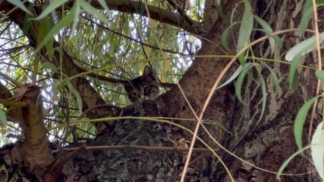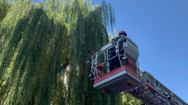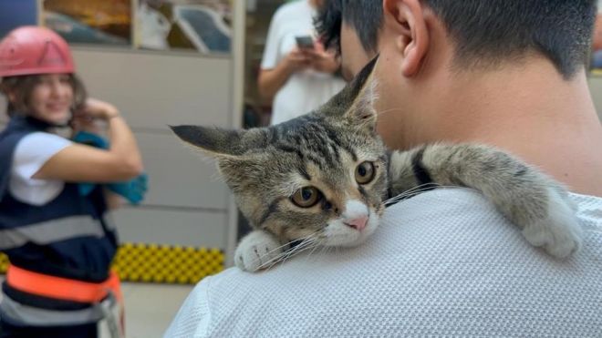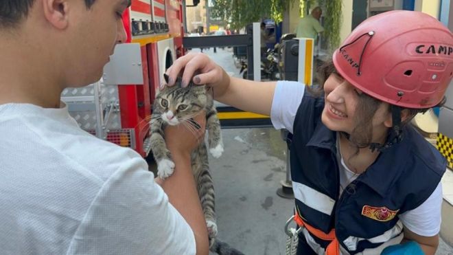 Olay, Bolu Valiliği binasının yan sokağı olan İbni Sina Caddesi üzerinde meydana geldi. Edinilen bilgiye göre, sabah saatlerinde yaramaz yavru kedi, ağaca tırmandı. Yaklaşık 4 metre yüksekliğindeki ağaca tırmanan ve ardından çıktığı yerde mahsur kalan kedi, vatandaşların dikkatini çekti. Kedinin ağaçtan inemediğini fark eden vatandaşlar durumu itfaiyeye bildirdi. Olay yerine gelen itfaiye ekipleri, ağaçta mahsur kalan kediyi, itfaiye aracının üzerinde bulunan merdiven sayesinde kediyi kurtardı. Yüksekten korkan kedi, bir süre kendisini kurtaran itfaiye personelini bırakmadı. Oğluyla birlikte yoldan geçen Mustafa Yavuz, “Kedi ağaçta kalmış. Oğlumla beraber geçiyorduk. Çocuk merak etti. Ona bakıyoruz. İtfaiye birazdan kurtaracak” dedi.