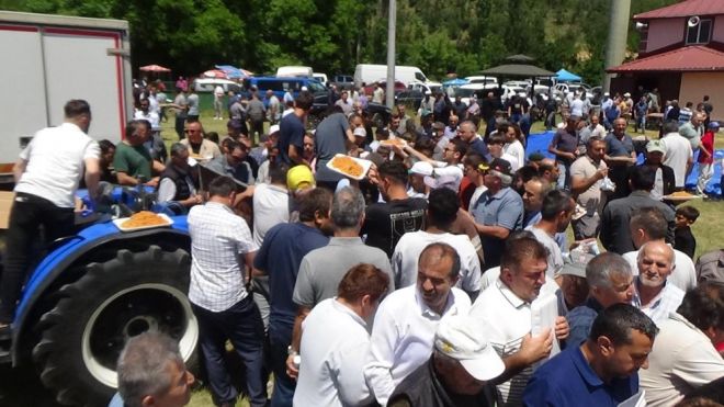 Asırlardır süregelen geleneksel Hacet Bayramı, bu yıl da Bulanık ve Mangırlar köylerinde coşkuyla kutlandı. Sabah saatlerinde başlayan programda, 500 kilogram et ve 500 kilogram bulgur ile hazırlanan dev kazanlardaki pilavlar, traktörlerle köy meydanına taşınarak vatandaşlara ikram edildi. Yoğun katılım nedeniyle meydanda zaman zaman izdiham yaşandı.