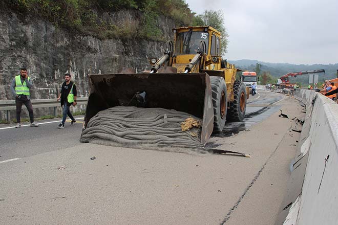 Kaza sabah saatlerinde Türkiye’nin en önemli geçiş güzergahlarından olan D-100 karayolu Bolu Dağı geçişi Bakacak mevki'inde meydana geldi. İstanbul istikametine gitmekte olan Savaş İlçin idaresinde ki BMC marka 74 AAG 546 plakalı zift yüklü tanker iddiaya göre frenlerinin patlaması aynı istikamete gitmekte olan Mehmet Sürer idaresinde ki Opel marka 14 NA 604 plakalı otomobile ardından kontrolden çıkarak beton bariyerlere çarparak devrildi. Zift yüklü tankerden yola boşalan zift ise zorlukla temizlendi. Zift ile asfalta yapışan tanker vinç yardımı ile güçlükle kurtarıldı. 4 saat süren çalışma soncunda tanker tekerleklerinin üzerine kaldırıldı. Tankerin çekilmesi ve yolun temizlenmesinin ardından Bolu Dağı tekrar trafiğe açılacak.