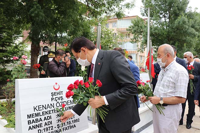 Bolu’da, 15 Temmuz Demokrasi ve Milli Birlik günü dolayısıyla Şehitler Mezarlığı’nda tören düzenlendi. Bolu Valisi Ahmet Ümit, İl Emniyet Müdürü Armağan Adnan Erdoğan, İl Jandarma Komutanı Jandarma Albay Ömer Ersever, kurum müdürleri ve vatandaşlar katıldığı törende şehitler için yapılan saygı duruşunun ardından Kur’an-ı Kerim okundu. Duaların edilmesinin ardından törene katılanlar şehitlerin mezarlarına karanfiller koyarak ailelerine bir kez daha başsağlığı diledi.