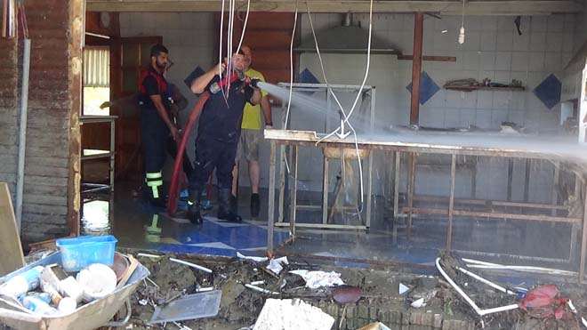 Düzce’de 18 Temmuz tarihinde yaşanan sel ve su baskınları bir çok iş yerini tahrip etti. Yaşanan sel ve su baskınında Akçakoca İlçesi Cumayanı Mesire alanında işletmecilik yapan 74 yaşındaki Kaniye Bayraktar’ın 18 yıl önce kurduğu işletmesi de sulara kapıldı, büyük tahribata uğradı. Harabe haline gelen tesis selin getirdiği çamurlardan itfaiye ekiplerinin yardımıyla temizlendi.