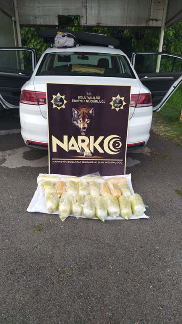 Edinilen bilgiye göre, Bolu İl Emniyet Müdürlüğü Narkotik Suçlarla Mücadele Şube Müdürlüğü ekipleri, Doğu illerinden İstanbul’a uyuşturucu taşındığı ihbarı üzerine çalışma başlattı. Ekipler, Bolu sınırları içerisine girdiği belirlenen otomobili TEM Otoyolu üzerinde kurulan uygulama noktasında durdurdu. Araç içinde yapılan aramalarda 20 parça halinde toplam 22 kilogram esrar ele geçirildi. Otomobilde bulunan kadınlar M. C. (36) ve Y. T. (21) gözlem altına alındı. İfadeleri alınmak üzere emniyet müdürlüğüne götürülen 2 şüpheli, işlemlerinin ardından adliyeye sevk edildi.