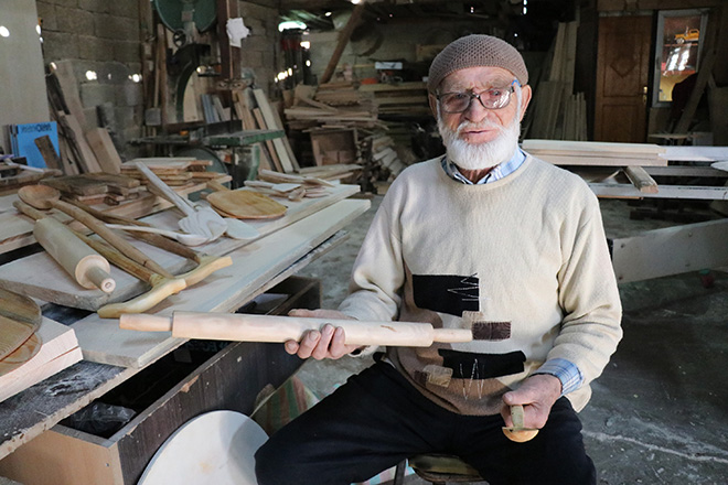 El becerisine güvenerek kimseden yardım almadan marangozluğu öğrenen Mehmet Aktulan, “40 yıl oldu bu işe başlayalı. Bir makine aldım ve ben bu işi yaparım dedim. El becerime güveniyordum. Allah da muvaffak etti. O günden bu güne çalışıyorum. Bu civarda elimin değmediği ev kalmamıştır. Kapı, pencere yapıyordum. Artık plastik çıkınca ahşap işi öldü. Ben de bu işleri yapmaya başladım. Kepçe, kaşık, sofra, kürek, baston yapıyorum. Pazarlara gidip satıyorum. 10-12 çeşit ürünüm oluyor. Kahvehane falan bilmem. Namazımı kıldıktan sonra birkaç kaşık yaparım ve pazarlarda satarım” dedi.