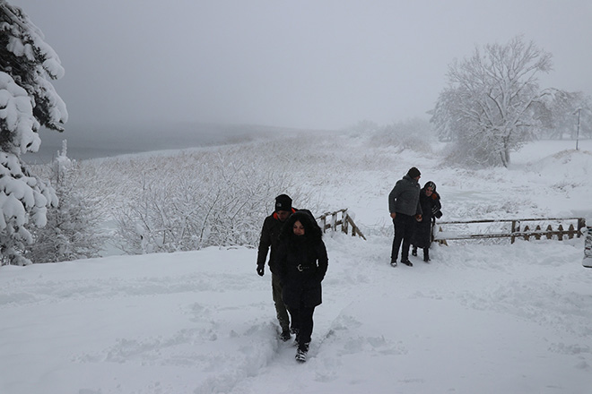 Türkiye’nin en önemli turizm merkezlerinden birisi olan ve dört mevsim ziyaretçilerin akınına uğrayan Abant Tabiat Parkı, kar yağışıyla beyaza büründü. Abant Tabiat Parkı’nda bulunan göl çevresindeki çam ağaçlarının karlarla kaplanması kartpostallık görüntüler oluşturdu. Tatil için Abant’ta gelen vatandaşlar, soğuk havaya aldırış etmeden göl çevresinde yürüyerek, bol bol fotoğraf çekindi. Bazı tatilciler ise, Tabiat Parkı’na yaklaşık 1 kilometre uzaklıkta olan dik yamaçlarda şambrelle kaydı.