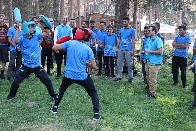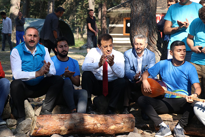 Kamptaki bir grup öğrencinin hep bir ağızdan türkü söylediğini gören Bakan Gül, öğrencilerin yanına oturarak söylenen türkülere eşlik etti. Bakan Gül, son olarak okçuluk yapılan bölgede ok attıktan sonra ziyaretini sonlandırdı.