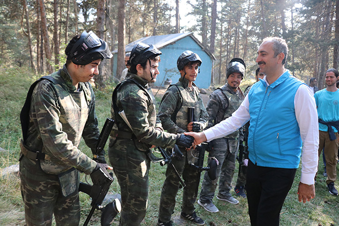 Adalet Bakanı Abdulhamit Gül, her yıl binlerce gencin katıldığı Aladağ Gençlik Kampı’nı ziyaret etti. Gençlik kampındaki etkinliklere katılan Bakan Gül’e, Bolu Valisi Ahmet Ümit, Cumhuriyet Savcısı Önder Yaman, Gençlik ve Spor İl Müdürü Şerafettin Çilkara da eşlik etti. Kampta ilk olarak öğrencilerle bisiklet turu yapan Bakan Gül, daha sonra kamp merkezi içerisinde bulunan kano alanına gitti. Öğrencilerin kano ile göle açılmasını izleyen Gül, paintball sahasına giderek atış yaptı. Lastiklerin üzerine konulan plastik bardaklara atış yapan Bakan Gül’ün nişancılığı öğrencilerden alkış aldı.