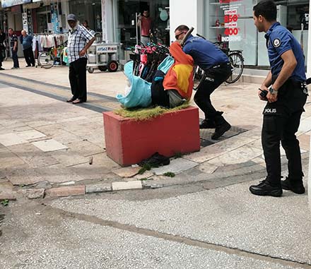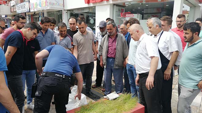 Olay öğlen saatlerinde Bolu Caddesi üzerinde meydana geldi. Alınan bilgilere göre, Afgan uyruklu olduğu öğrenilen bir şahıs çalıştığı iş yerinden maaşını alamayınca elinde ki ekmek bıçağı ile etrafa tehditler savurunca vatandaşlar durumu polise haber verdi. Olay yerine gelen polis ekipleri ise şahsı sakinleştirmeye çalışırken saldırganlığı devam ettiğinden gözaltına almak istedi. Saldırgan hali devam eden şahıs zorlukla yere yatırılıp gözaltına alındı ve polis otosuna konuldu. Boğuşma sırasında ise bir polis memuru kolundan hafif şekilde yaralandı. Polis otosuna alınan şahıs önce hastaneye ardından ise Polis Merkezi’ne götürüldü. Şahsın yanında bulunan bıçak ve sopa da polis ekiplerince muhafaza altına alındı.