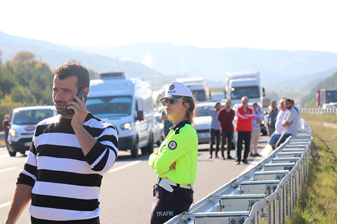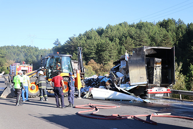 TEM’de meydana gelen tır yangını nedeniyle otoyolun Ankara istikameti jandarma ve polis ekipleri tarafından trafiğe kapatıldı. Tırda bulunan elektronik malzemelerin patlaması ihtimaline karşı otoyolu İstanbul istikameti de kısa süreli araç geçişine yasaklandı. Yaklaşık 2 saat boyunca trafiğe kapalı kalan TEM Otoyolu Ankara istikameti, soğutma çalışmalarının ardından tek şeritten kontrollü olarak açıldı. Olayla ilgili inceleme başlatıldı.