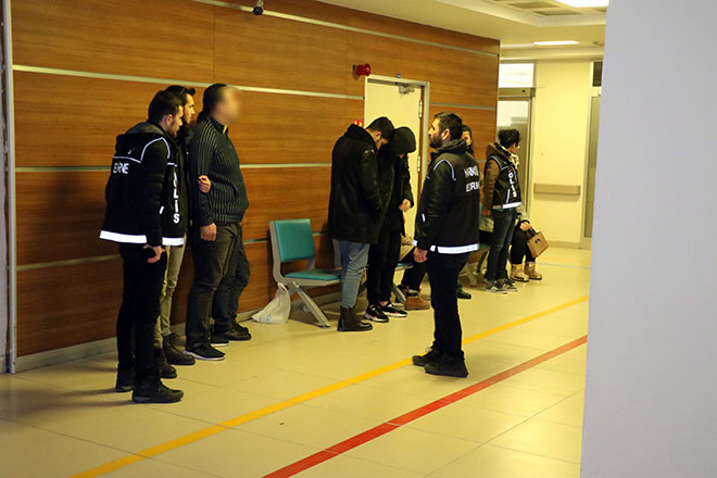 Edinilen bilgiye göre, Edirne İl Emniyet Müdürlüğü Narkotik Suçlarla Mücadele Şube Müdürlüğü ekiplerinin, ‘Uyuşturucu madde ticareti’ yapan şahıslara yönelik olarak yapılan çalışmalar neticesinde, H.H. isimli İran vatandaşı şahsın uyuşturucu madde ticareti yaptığı tespit edildi. H.H.’nin temin ettiği uyuşturucu maddeleri Avrupa ülkelerine gönderdiği ve İstanbul ile Marmara Bölgesinde bulunan illere uyuşturucu madde naklettiği bir başka grup ile iş birliği içerisinde olduğu belirlendi. Bolu, Bursa ve İstanbul illerinde yapılan ortak operasyonlarda, toplam 9 kilogram 920 gram eroin, 4 kilogram 80 gram metamfetamin ele geçirildi. İstanbul, Bolu ve Bursa illerinde; 4’ü İran, 1’i Kanada vatandaşı olan toplam 7 şüpheli şahıs yakalandı. Şahısların ikametlerinde yapılan aramalarda da ayrıca, 0,46 gram skunk maddesi ve 139 gram metamfetamin maddesi ele geçirildi. Soruşturma kapsamında H.H., S.E., F.M. ve M.J. isimli İran uyruklu 4 şahıs, S.P isimli İran uyruklu Kanada vatandaşı şahıs ile A.A. ve İ.T. isimli şüpheliler, yakalanarak gözaltına alındı. Aralarında 3’ü kadın olan toplam 7 şüpheli şahıs, Edirne Sultan 1. Murat Devlet Hastanesi’ndeki sağlık kontrollerinin ardından Edirne Adliyesi’ne sevk edildi.