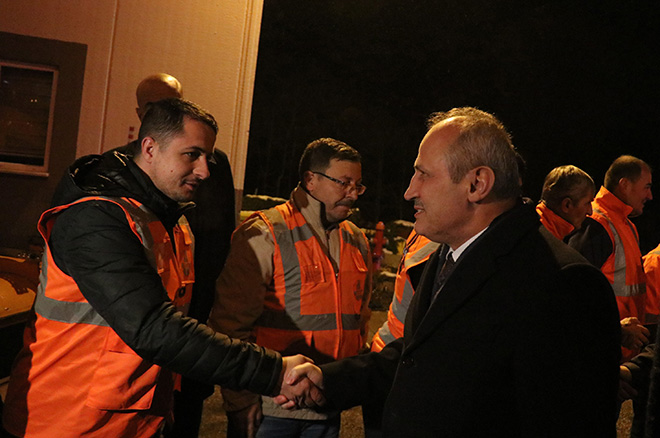 İncelemelerin ardından gazetecilere açıklamalarda bulunan Ulaştırma ve Altyapı Bakanı Mehmet Cahit Turhan, “İnşallah 2020 yılı ülkemiz, milletimiz, tüm dünya için barış ve huzurun tesis edildiği bir yıl olur. Burada arkadaşlarımız gece gündüz 24 saat bu yollarda seyreden trafiğin emniyetli ve konforlu bir şekilde seyahat etmesini, ulaşım hizmetini sağlamak için azim ve gayretle çalışıyorlar” dedi.