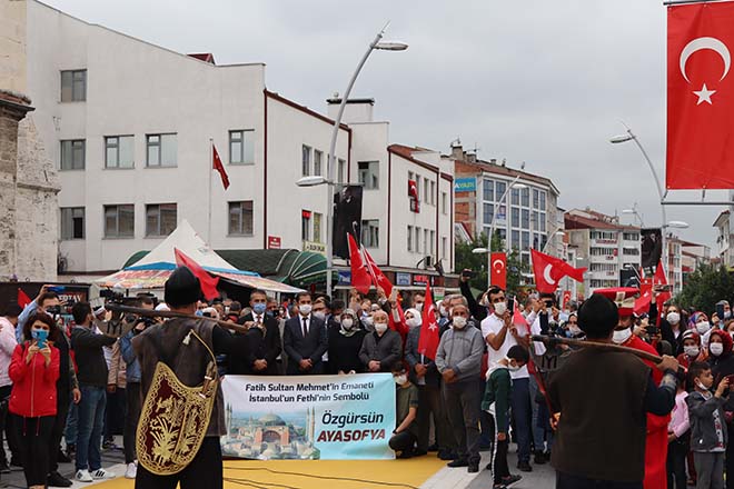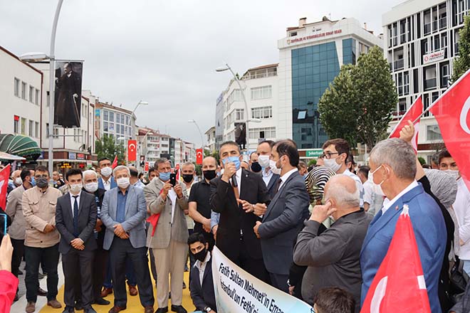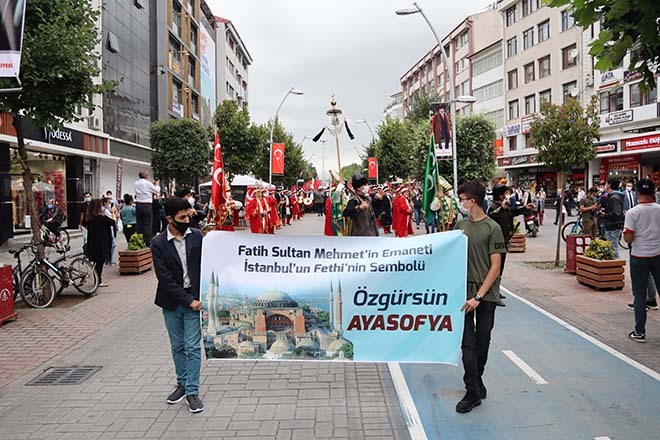 Bolu Valiliği önünden, mehteran eşliğinde başlayan yürüyüş Kadı Camii önünde son buldu. Ak Parti Bolu İl Başkanı Nurettin Doğanay Ayasofya’nın Cami olarak ibadete açılma hayalinin Danıştay’ın Ayasofya’nın Camiden müzeye dönüştürülmesini sağlayan 1934 tarihli bakanlar kurulu düzenlemesinin iptaliyle gerçekleştirildiğini vurgulayarak; “Bu kararın milletimize, ümmetimize ve tüm insanlığa hayırlı olmasını diliyorum. Ayasofya’nın 86 yıl sonra yeniden ibadete açılması tüm yurtta olduğu gibi Bolu’da da sevinçle karşılanmıştır. Ayasofya’nın cami olarak hizmete açılması egemen Türkiye’nin hür haykırışıdır. İnşallah, 24 Temmuz’dan itibaren Ayasofya’da namazlarımızı kılmaya başlayacağız. İçine ancak bilet alarak girebildiğimiz ecdat mirasına inşallah artık abdest alarak girebileceğiz. Tüm camilerimiz gibi Ayasofya’nın kapıları da yerli ve yabancı, müslüm ve gayrimüslüm herkese sonuna kadar açık olacaktır. Bu kararlara karşı verilen her türlü tepki Türkiye’nin egemenlik haklarının ihlali demektir. Sayın Cumhurbaşkanımızın riyasetindeki Türkiye, sahip olduğu tüm hakları, milletimizin duygu ve talepleri doğrultusunda sonuna kadar kullanmaya kararlıdır. Hakkını kullanmaktan çekinmeyen, tam bağımsız ve Büyük Türkiye yolunda Sayın Cumhurbaşkanımızla birlkte yürümekten dolayı Allah’a binlerce kez şükrediyoruz. 10 Temmuz 2020 itibariyle Türkiye Cumhuriyetinde bir devir daha kapanmış, yerine daha adil ve muteberi konmuştur” ifadelerini kullandı. Etkinlik sonunda Kadı Camii önünde vatandaşlara lokma ikramı yapıldı.