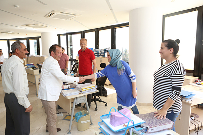 Bolu Belediye binasındaki birimleri tek tek dolaşarak belediye çalışanlarının Kurban Bayramı’nı kutlayan Bolu Belediye Başkanı Tanju Özcan; “Başta sizlerin ve ailelerinizin Kurban Bayramı’nı şimdiden kutluyorum. İnşallah hep beraber daha güzel bayramlara ulaşırız. Çalışmalarınızda başarılar diliyorum” dedi.