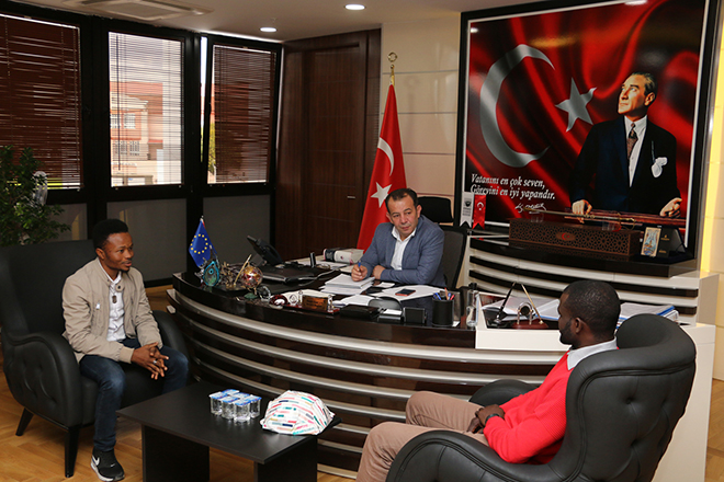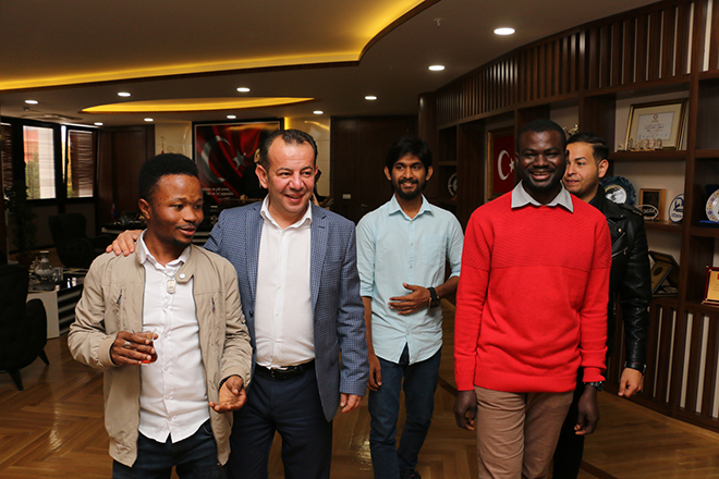 Salı günü öğleden önce gerçekleşen ziyarette Bolu Belediye Başkanı Tanju Özcan, kendisine ziyaret eden yabancı öğrencileri makamında ağırlayarak sohbet etti.