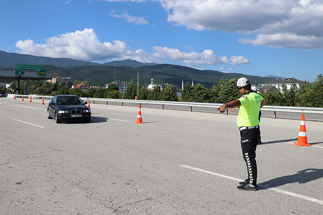 Bolu İl Emniyet Müdürlüğü’ne bağlı trafik ekipleri, Türkiye’nin en önemli karayolu geçiş güzergahlarından birisi olan Bolu’da, Kurban Bayramı tatili boyunca sürücülerin rahat yolculuk yapabilmesi ve kazaların önlenmesi amacıyla tedbirlerini artırdı. Kazaların yoğun olduğu bölgelerde radarla hız denetimlerini sıklaştıracak olan ekipler, yorgun görünen sürücüleri ise, araç dışında dinlenmelerini sağlayacak. Bolu Batı Gişeleri’nde trafik uygulaması yapan ekipler, sürücüleri trafik kurallarına uymaları konusunda uyarılarda bulunarak, bayram boyunca alınacak tedbirlerle ilgili bilgilendirdiler.