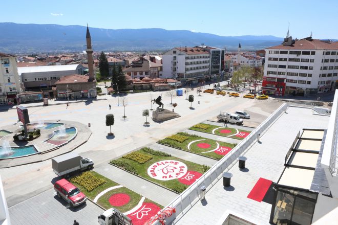 Bolu Belediyesi hizmet binasının hemen yanında yer alan iş merkezinin tamamlanarak hizmete açılmasının ardından Bolu Belediyesi Park ve Bahçeler Müdürlüğü tarafından iş merkezinin önündeki alanda başlatılan peyzaj çalışmalarında sona gelindi. Kısa süre önce başlatılan peyzaj çalışmaları kapsamında her gün binlerce kişinin geçtiği iş merkezinin önünü süs bitkileri ve çimen ile yeşillendiren belediye ekipleri, ardından doğal taşlarla ‘Bolu’yu Seviyorum’ logosu oluşturdu. Ekiplerin özverili çalışması bugün itibariyle sona erdi. Çalışmaların tamamlanmasıyla birlikte Belediye Meydanı çok daha güzel bir görünüme kavuşurken, vatandaşlardan da tam not aldı.