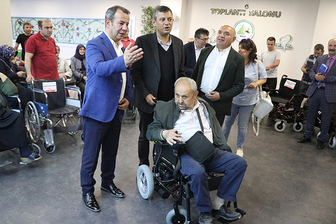 Tebrik çiçeklerinin satılarak elde edilen gelirle ihtiyaç sahiplerine akülü araç alınmasının parlak bir fikir olduğunu söyleyen Grup Başkanvekili Özel, “Tanju Özcan’ın bulunduğu her yerde enerji vardır, akıl vardır, parlak fikir vardır. Bugün de burada örnek bir davranış gördük. Ben çok sayıda çiçek geldiğini bilirim ama bu çiçeklerin ihaleye çıkartalım, satalım bundan da akülü araba alalım gerçekten çok parlak bir fikir. Duyduğumda da bu beni çok mutlu etti. Kendisini tebrik ediyoruz. Türkiye hiç şüphesiz Bolu’dan, Tanju Özcan’dan parlak projeler, parlak fikirler duymaya devam edecek. Her türlü dezavantajlı gruba sahip çıkmak sosyal belediyeciliğin görevi. Bugün engelli dostlarımıza, kardeşlerimize yapılan bu katkıyı da son derece önemsiyoruz.” diye konuştu.