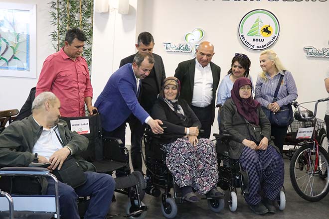 Bolu Belediyesi’nde 31 Mart yerel seçimleri sonrası çok sayıda tebrik çiçeği gönderilmiş, Belediye Başkanı Tanju Özcan’da çiçeklerinin satılması ve elde edilen gelirle ihtiyaç sahibi engelli bireylere akülü sandalye alınması talimatı vermişti. Açık arttırma usulüyle satılan yüzlerce çiçeklerden elde edilen gelirlere alınan akülü sandalyelerden 14’ü, bugün ihtiyaç sahiplerine teslim edildi. Kültür ve Sosyal İşler Müdürlüğü’nde gerçekleşen akülü sandalye teslim törenine CHP Grup Başkanvekili Özgür Özel, CHP Kocaeli Milletvekili Tahsin Tarhan, CHP Bolu Belediye Başkanı Tanju Özcan, ihtiyaç sahibi engelli bireyler ve yakınları katıldı.