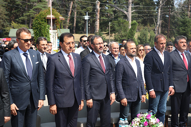 Törene katılan Gençlik ve Spor Bakanı Mehmet Muharrem Kasapoğlu ise, devrim niteliğinde pek çok başarıya hep birlikte imza attıklarını belirterek, “Ülke olarak son 18 yılda Cumhurbaşkanımızın vizyonuyla, kararlılığıyla pek çok alanda açılımlar gerçekleştirdik. Bu anlamda Cumhurbaşkanımızın spora verdiği önem, sporcuya verdiği önem büyük avantajlarımızdan bir tanesi. Stadyumlarımızla, kalitesiyle, modernliğiyle, salonlarımızla, havuzlarımızla, açık ve kapalı kortlarımızla ülkemiz tesis açısından dört dörtlük envantere sahip. İnşallah bundan sonraki süreçte de tesislerimizi insanlarımızla daha çok doldurarak, kadınıyla erkeğiyle, genciyle yaşlısıyla, spor yapan bir toplum olma yolunda hızla ilerleyeceğiz. Bu vesileyle süreci de sporda başarıyı taçlandırarak götüreceğiz. Gerek kulüplerimize gerek federasyonlarımıza ve gerekse burada bizim en önemli iş ortağımız olan yerel yönetimlere büyük görev düştüğünü düşünüyorum” diye konuştu.