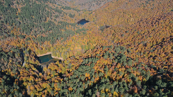 Bolu kent merkezine 44 kilometre uzaklıkta bulunan ve içerisinde barındırdığı Nazlıgöl, Seringöl, Deringöl, Sazlıgöl, Küçükgöl, İncegöl ve Büyükgöl'le her yıl binlerce ziyaretçiyi ağırlayan Yedigöller Milli Parkı’nda, sonbaharın gelmesiyle renk cümbüşü yaşanıyor. İçerisinde bulunan ağaçların, yeşil ve sarının bütün tonlarını sergilediği Yedigöller Milli Parkı’nın havadan görüntüsü eşsiz manzarayı da ortaya çıkarıyor. Fotoğraf tutkunlarının özellikle tercih ettiği Yedigöller’de, ziyaretçiler eşsiz manzara da fotoğraf çektirerek keyifli anlar yaşıyor. Baharın eşsiz deneyimini yaşamak isteyen bazı tatilciler ise, yanlarında getirdikleri çadırlarla mili park içerisinde kamp hayatı da yaşayabiliyor.