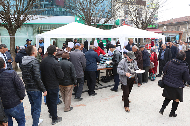Bolu Belediyesi Kültür Sosyal İşler Müdürlüğü tarafından her kandilde olduğu gibi Miraç Kandili’nde de halka kandil pilavı dağıtıldı. 10 bin kişilik pilav, öğle namazı sonrası Demokrasi Meydanı’nda kurulan stantta Bolu Belediye Başkanı Alaaddin Yılmaz, Belediye Başkan Yardımcısı İsa Özcan tarafından vatandaşlara ikram edildi. Pilav dağıtımında bir konuşma yapan Başkan Yılmaz; “Pilav dağıtımımız, Bolu Belediyesi’nde gelenek haline geldi. Bütün kandillerimizde, özel günlerimizde, mübarek günlerimizde vatandaşlarımızla kucaklaşıyoruz. Bu günler bizleri birleştiren, kucaklaştıran günler. İnancımız gereği mübarek günler. Şu an İslam âleminin, ülkemizin ve dünyanın hali belli. Dualarımızda da diyoruz ki; ‘Artık bundan sonra insanlık kendine, özüne dönsün. Müslümanlar özüne dönsün. Çilelerden arınsın.’ Bu dünya hepimize yetecek kadar yaradan tarafından yaratılmış. İnşallah bunun nimetini algılarız. İnşallah buna göre de davranışlarımızı tanzim ederiz. Ülkemiz için de sıkıntılı günlerden geçiyoruz. İnşallah bir an önce bu sıkıntılar sona erecektir. Ama önemli olan birlikteliğimizi ve dayanışmamızı sürdürmektir. Karşımızdakine insan olarak bakalım yeter diyorum. Miraç Kandili İslam alemi için özel bir gün. Ben bu vesile ile tüm İslam âleminin kandilini kutluyorum. Hayırlara vesile olmasını yüce Allah’tan niyaz ediyorum.” şeklinde konuştu.