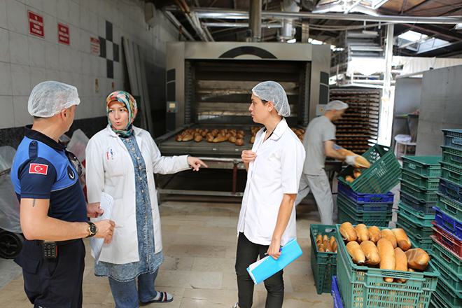 Sağlık İl Müdürlüğü ekiplerinin de destek verdiği denetimlerde Zabıta ekipleri, 34 pastane ile 25 ekmek fırına, gramaj, hijyen ve ruhsat denetimi yapıldı. Özellikle yufka ve tatlı siparişi alan gıda imalathanelerine yapılan denetimlerde ekipler, çalışanların kişisel ve genel hijyen kurallara uyup uymadığını ve gıda saklama koşullarının uygunluğunu denetleyerek ruhsat kontrolü yaptı.