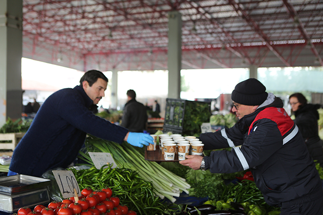 Bolu Belediye Başkanı Tanju Özcan’ın şehir dışında olmasından dolayı pazaryerlerinde vatandaşlara ikramda bulunan ve Başkan Tanju Özcan’ın selamını ileten Bolu Belediye Başkan Yardımcısı Rasim Özdemir; “Havaların soğuk olması sebebiyle semt pazarlarımızda hizmet eden esnaflarımızın ve alışveriş için gelen vatandaşlarımızın içinin ısınması için kendilerine sıcak çorba ikramında bulunuyoruz ve onlarla sohbet etme imkanı buluyoruz. Bu sayede ayrıca esnafımızın sıkıntılarını yerinde görüyor ve çözüm için hızla adımları atıyoruz. Bugün Kalıcı Konutlar Pazaryeri ve Beşkavaklar Mahallesi Pazaryerindeydik yarın da Karaçayır ve Sağlık Mahallesi’nde olacağız. Bu uygulamaya her gün farklı bir pazaryerinde devam edeceğiz. Bizler esnafımızın ve vatandaşımızın her zaman yanındayız” dedi.